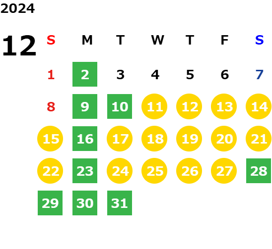 毎週月曜日、第2・第4火曜日/GW/夏期・年末年始