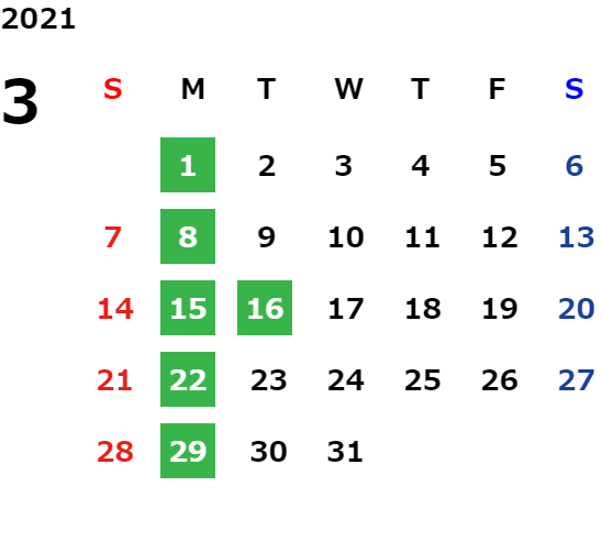 毎週月曜日、第2・第4火曜日/GW/夏期・年末年始