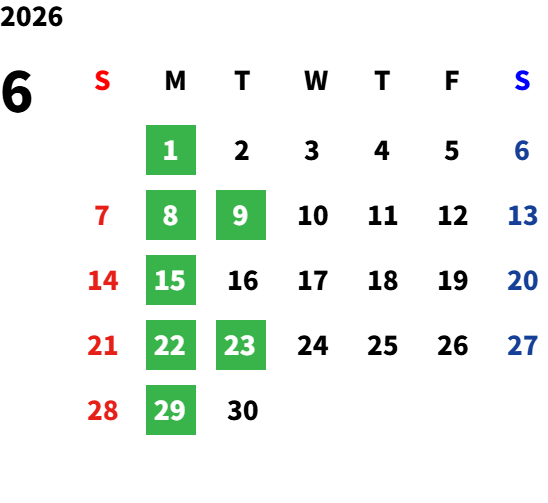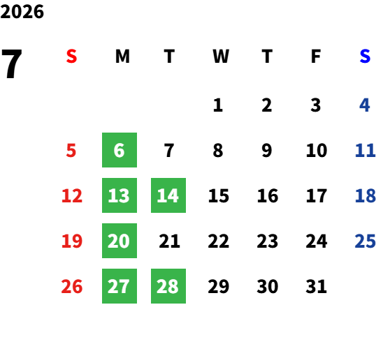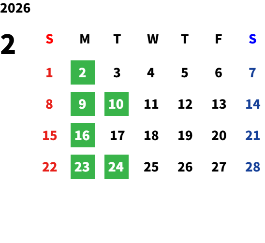 毎週月曜日、第2・第4火曜日/GW/夏期・年末年始