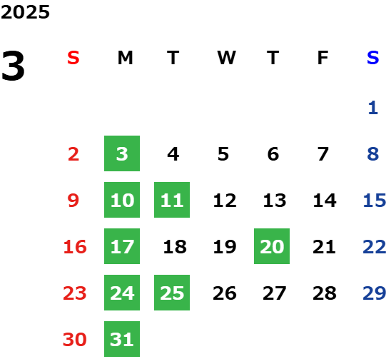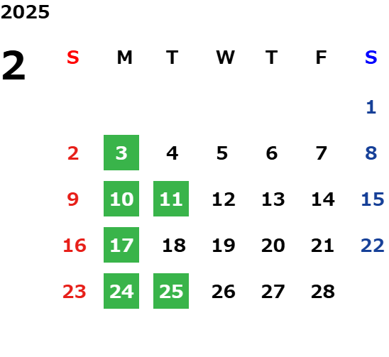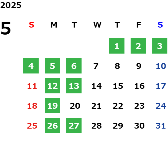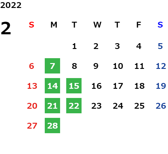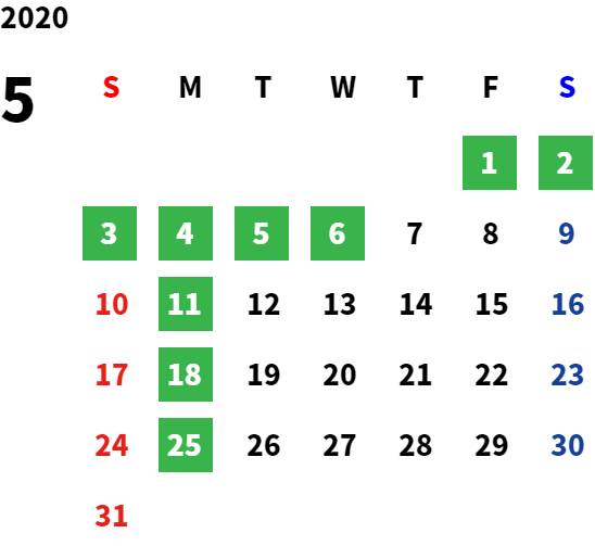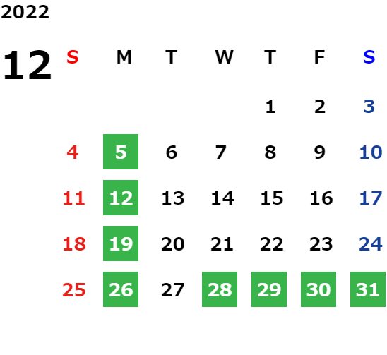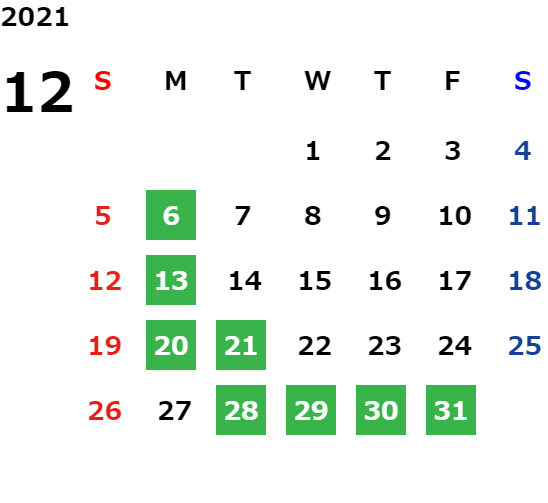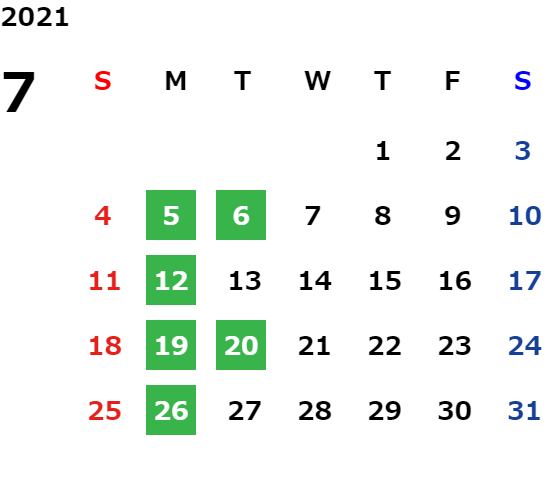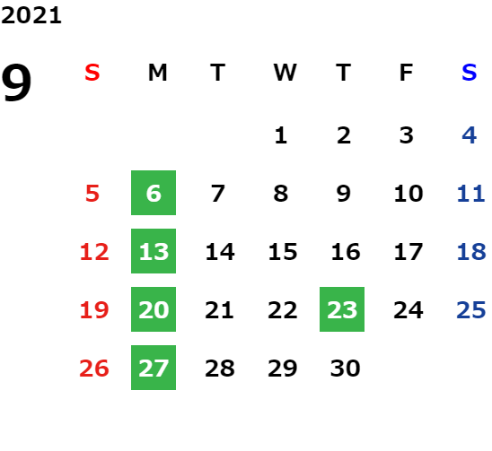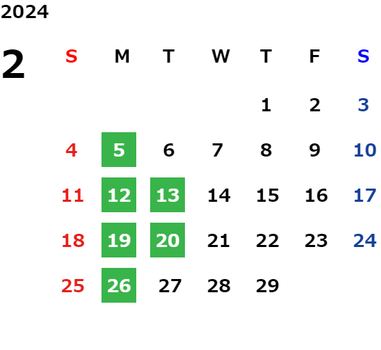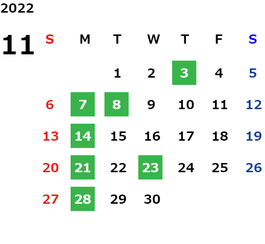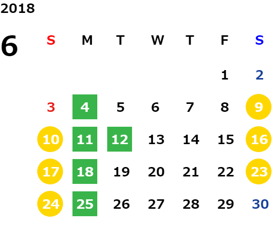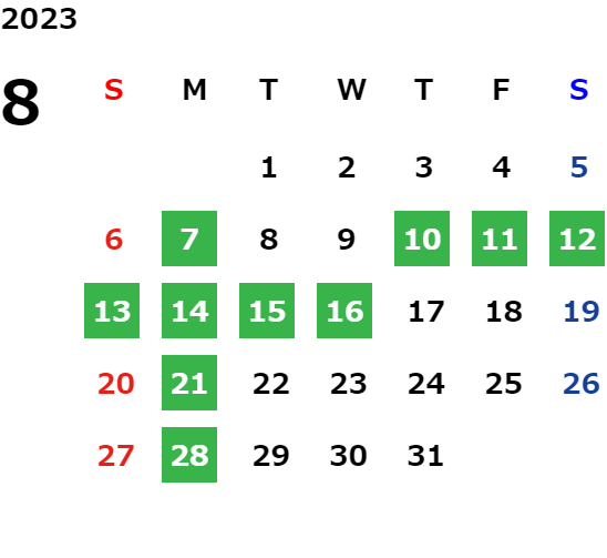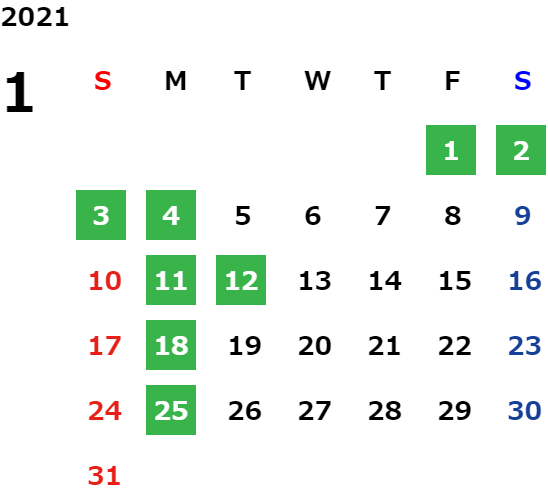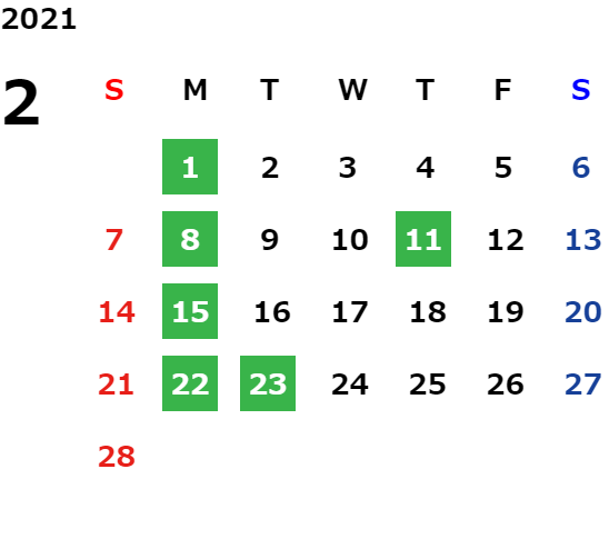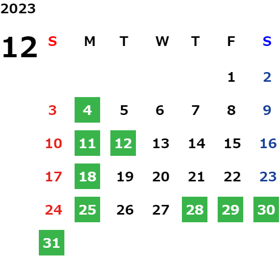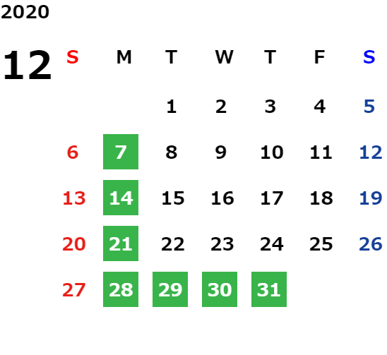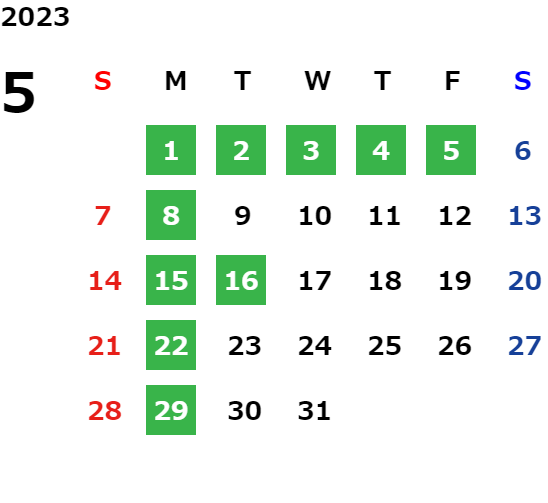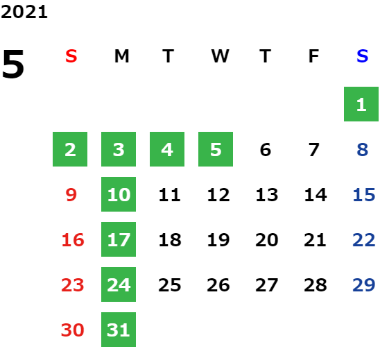 営業日カレンダー