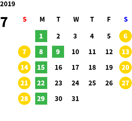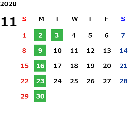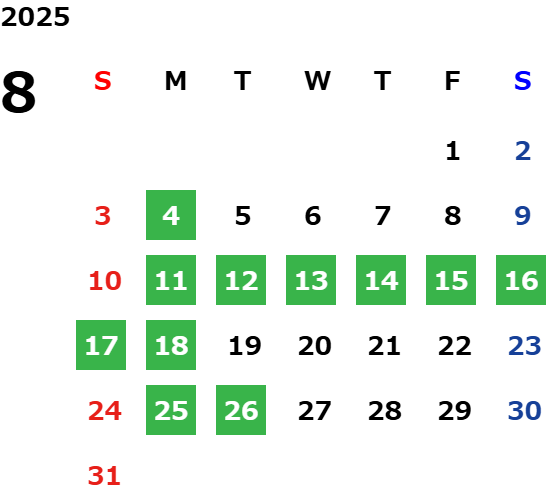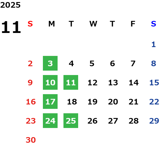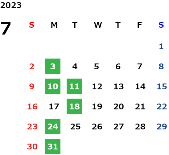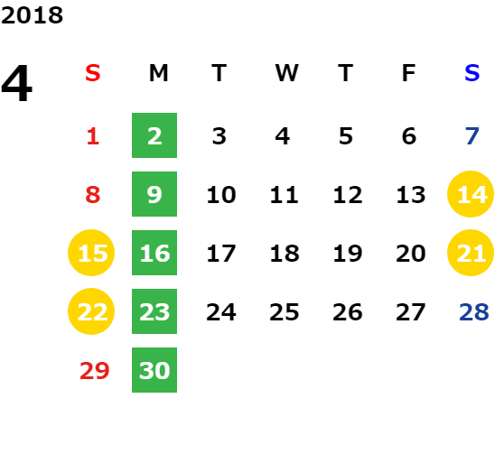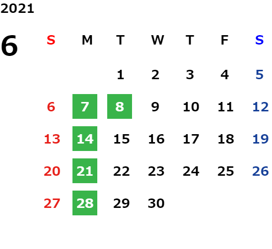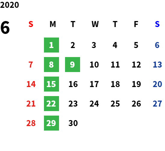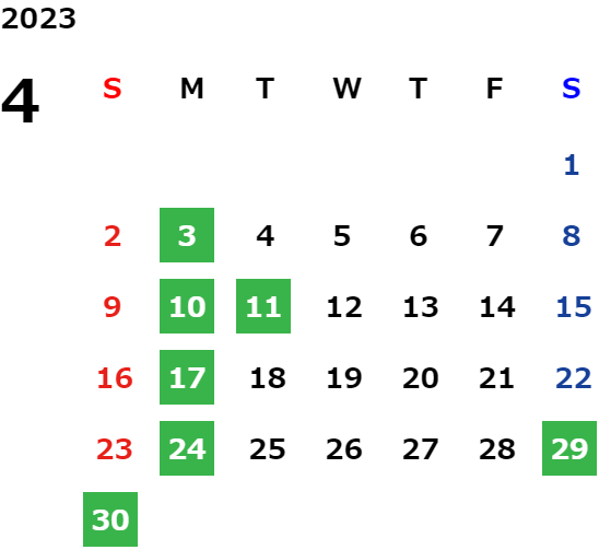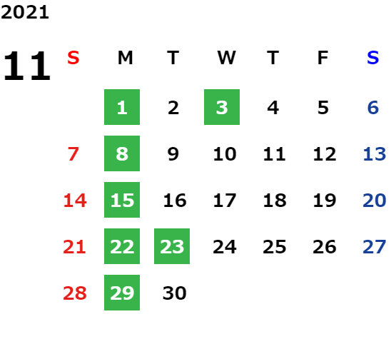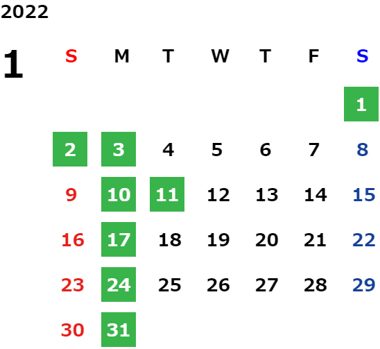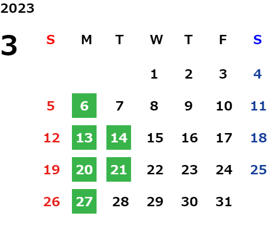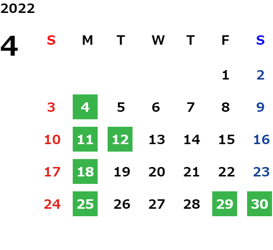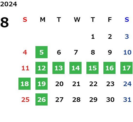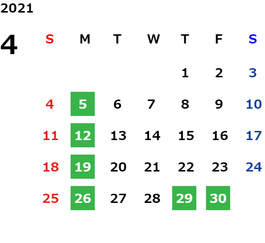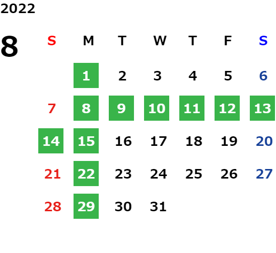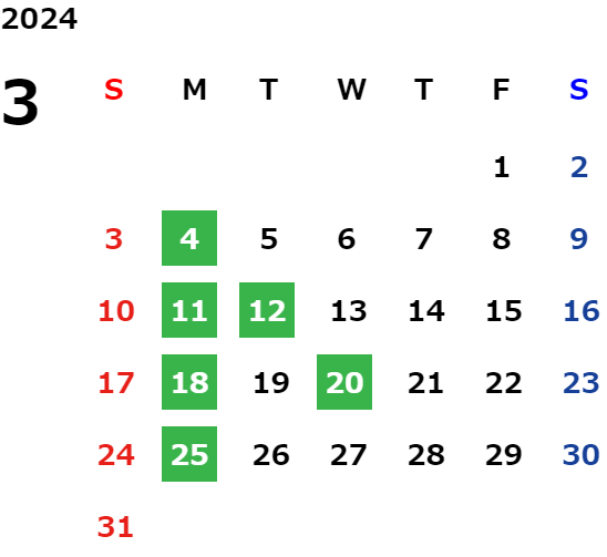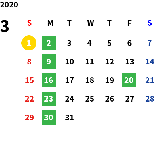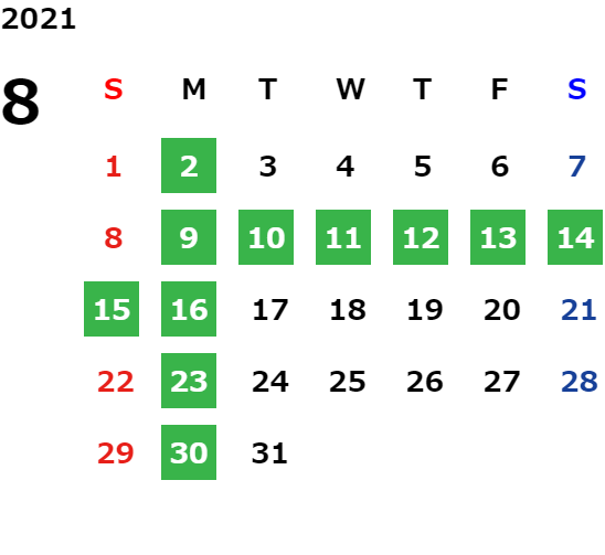 営業日カレンダー