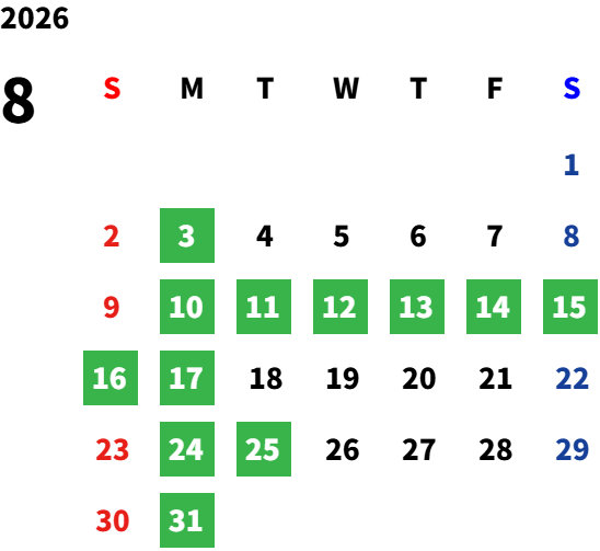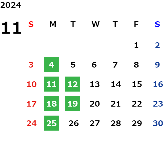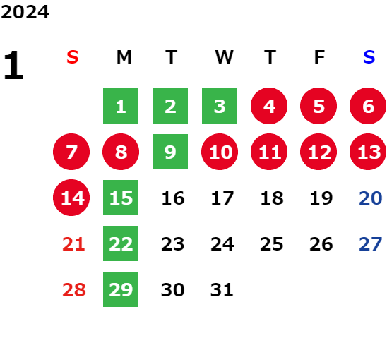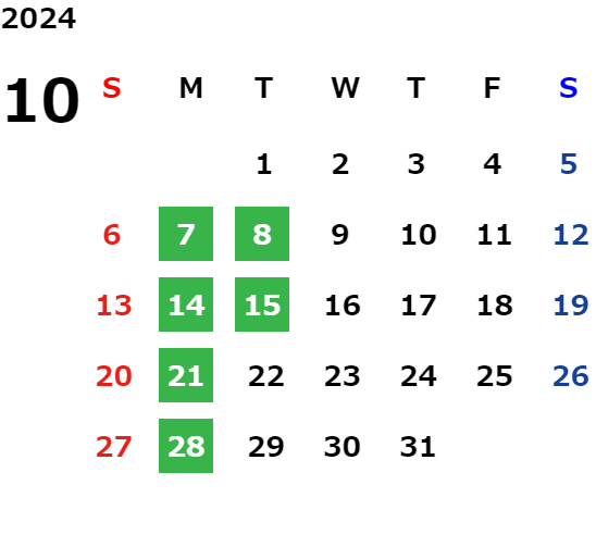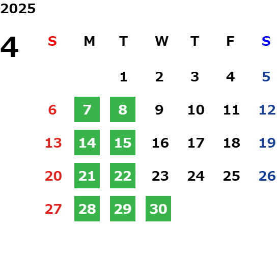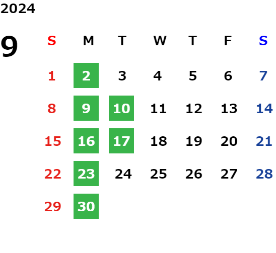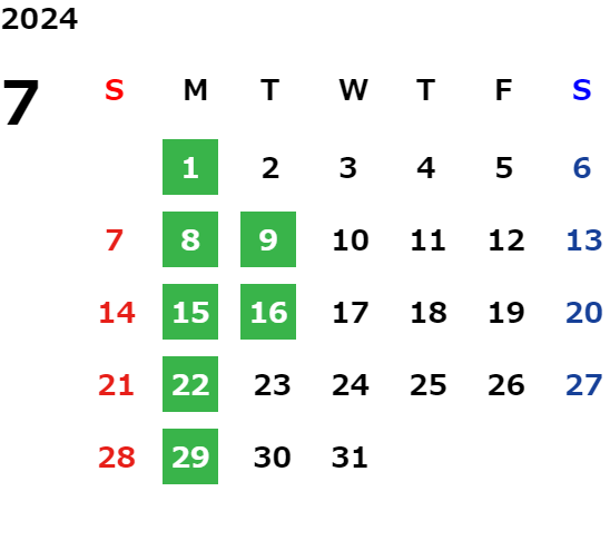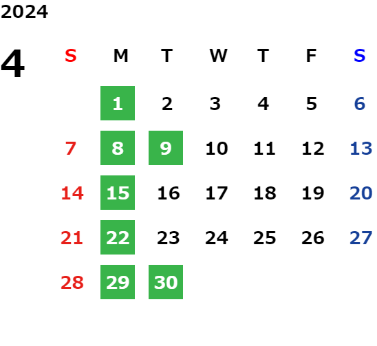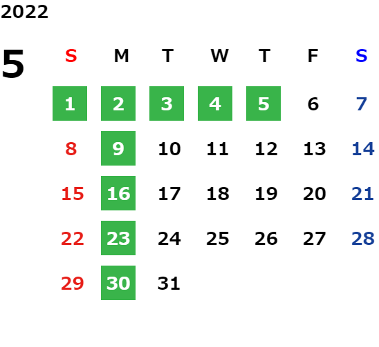 毎週月曜日、第2・第4火曜日/GW/夏期・年末年始